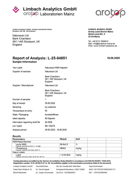 Örömmel jelentjük be, hogy egy nagy tisztaságú NMN (nikotinamid mononukleotid) kapszulával bővült a Naturecan termékcsalád! Az általános egészség és jó közérzet támogatására tervezték, így a tiszta NMN-kiegészítőnk beépítése a napi étrendbe kiváló választás mindazok számára, akik lépéseket szeretnének tenni a hosszú élet felé.