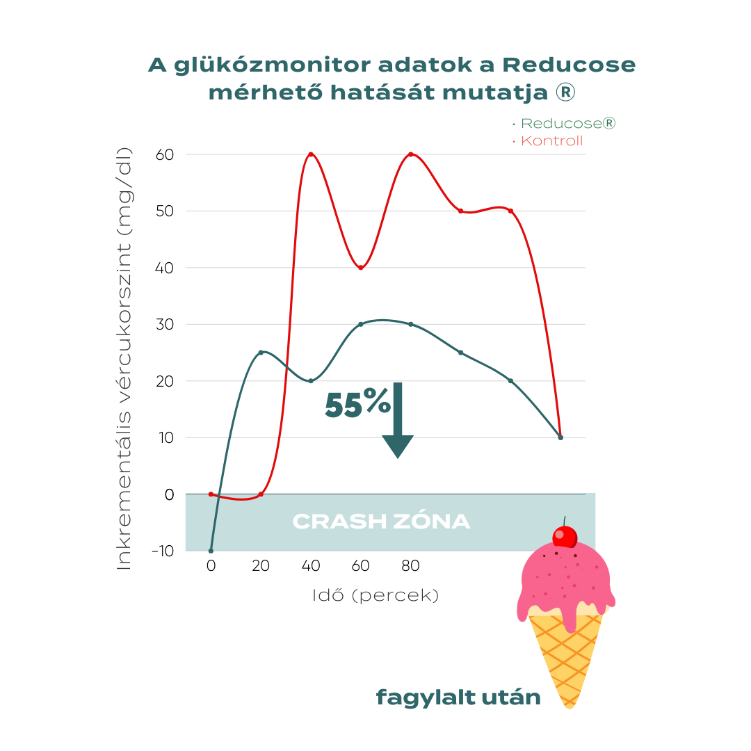 Ami még lenyűgözőbb, hogy a legaktívabb időszakban (1-2 órával az étkezés után) a GLP-1 69%-os növekedését mutatták ki. A vizsgálat végére a Reducose® csoport GLP-1 szintje 60%-kal magasabb volt, mint a kontrollcsoporté.